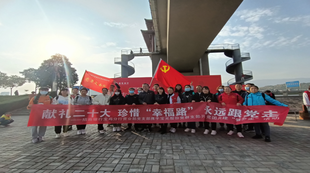 秋日暖陽,金風(fēng)送爽,為慶祝黨的二十大勝利召開,豐富職工文化生活,10月22日上午,寶光股份黨群黨支部與招商銀行寶雞分行營業(yè)部黨支部攜手開展黨團(tuán)共建“健步走”活動,黨群黨支部近20名黨員群眾參加了活動。