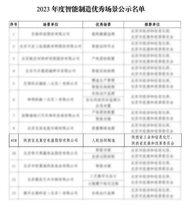 近期,工業(yè)和信息化部公布了“2023年度智能制造示范工廠揭榜單位和優(yōu)秀場景名單”,寶光股份申報的《真空滅弧室關鍵零件智能生產(chǎn)線》項目順利入選智能制造示范優(yōu)秀場景,標志著寶光股份智能制造水平邁上新臺階。